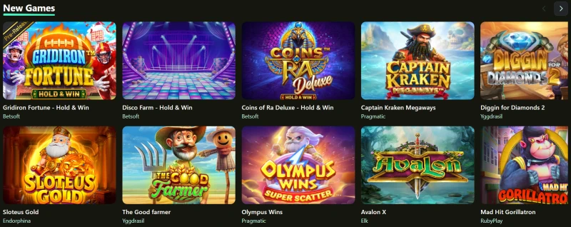 Betrix Casino har en dedikerad hylla för "Nya spel" för att sÀkerstÀlla att lobbyn inte kÀnns repetitiv. Nyligen tillagda titlar som du vanligtvis hittar dÀr inkluderar: